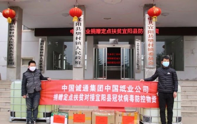 中国纸业在这场“疫”情大考中,发挥央企担当,科学防控,积极复产的同时,与定点扶贫单位河南省宜阳县心连心。经过中国纸业党委统筹部署,公司总部及所属企业向宜阳县捐赠包括防护罩、一次性医用口罩、消毒液和护目镜等在内总价值约15万元的防疫物资。目前,第一批防疫物资已运抵宜阳,清点数量后将第一时间送往相关部门、县医院及中国诚通和中国纸业对口帮扶的贫困村。