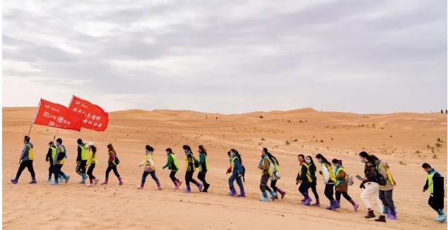 活动以沙漠徒步、团队拓展、党史知识竞答为载体,将党史学习教育贯穿始终。在“开营破冰、团队组建”环节,大家在教练的指导下分成两个小分队,创立队名、队歌和口号,并在紧张的气氛中分别进行了集体展示,短时间内凝聚起全员聚合力和战斗力。